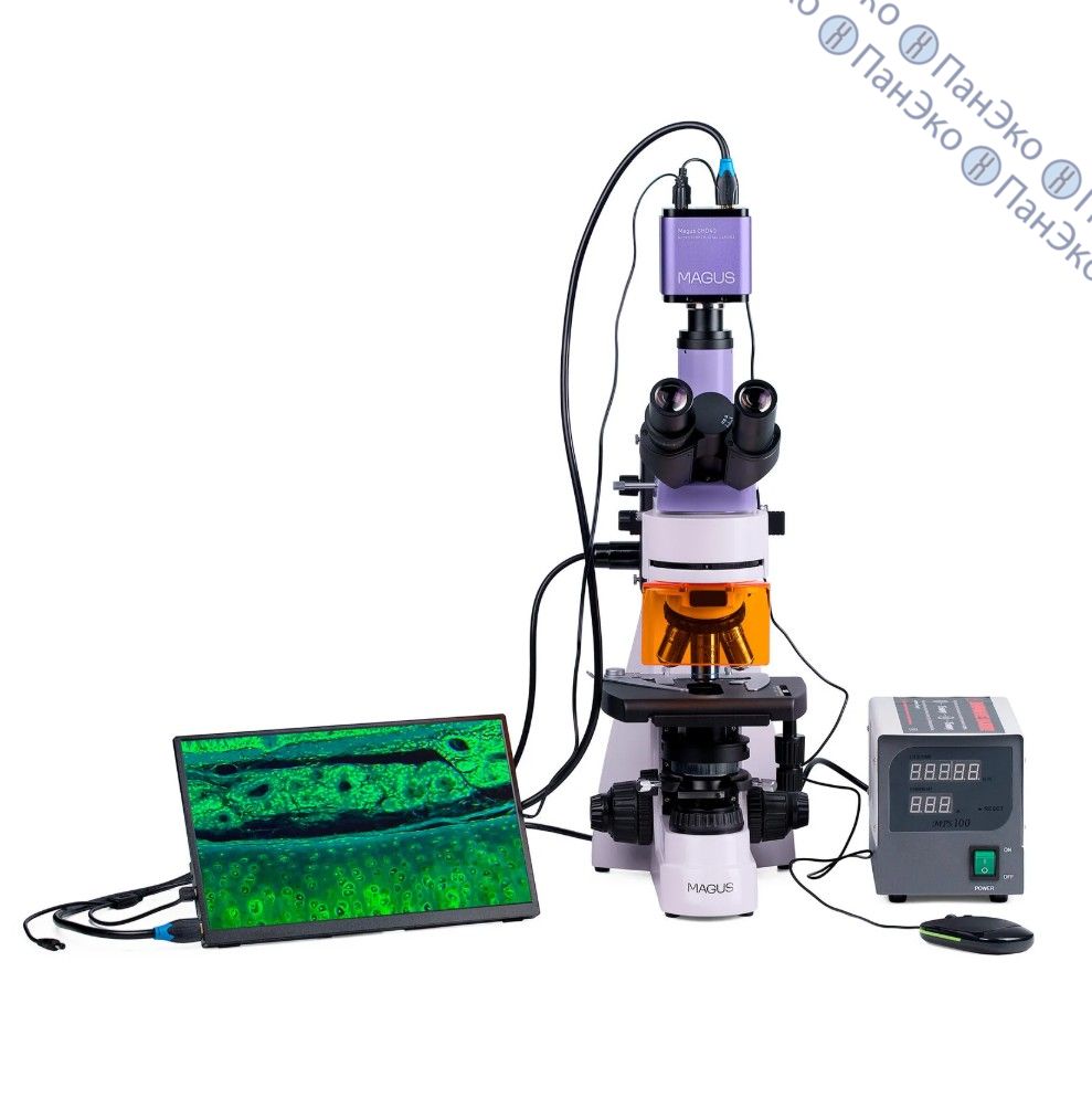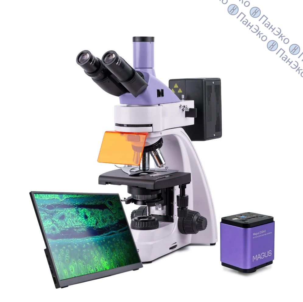 Микроскоп люминесцентный Lum D400 LCD, прямой, тринокуляр, галог. 30 Вт, ртут. 100 Вт, камера, монитор, MAGUS