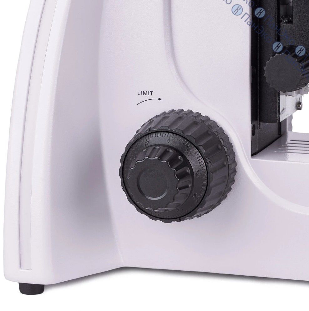 - Ход предметного столика: двухкоординатный металлический, без выдвижной рейки, размер: 180х150 мм; диапазон перемещения: 75/50