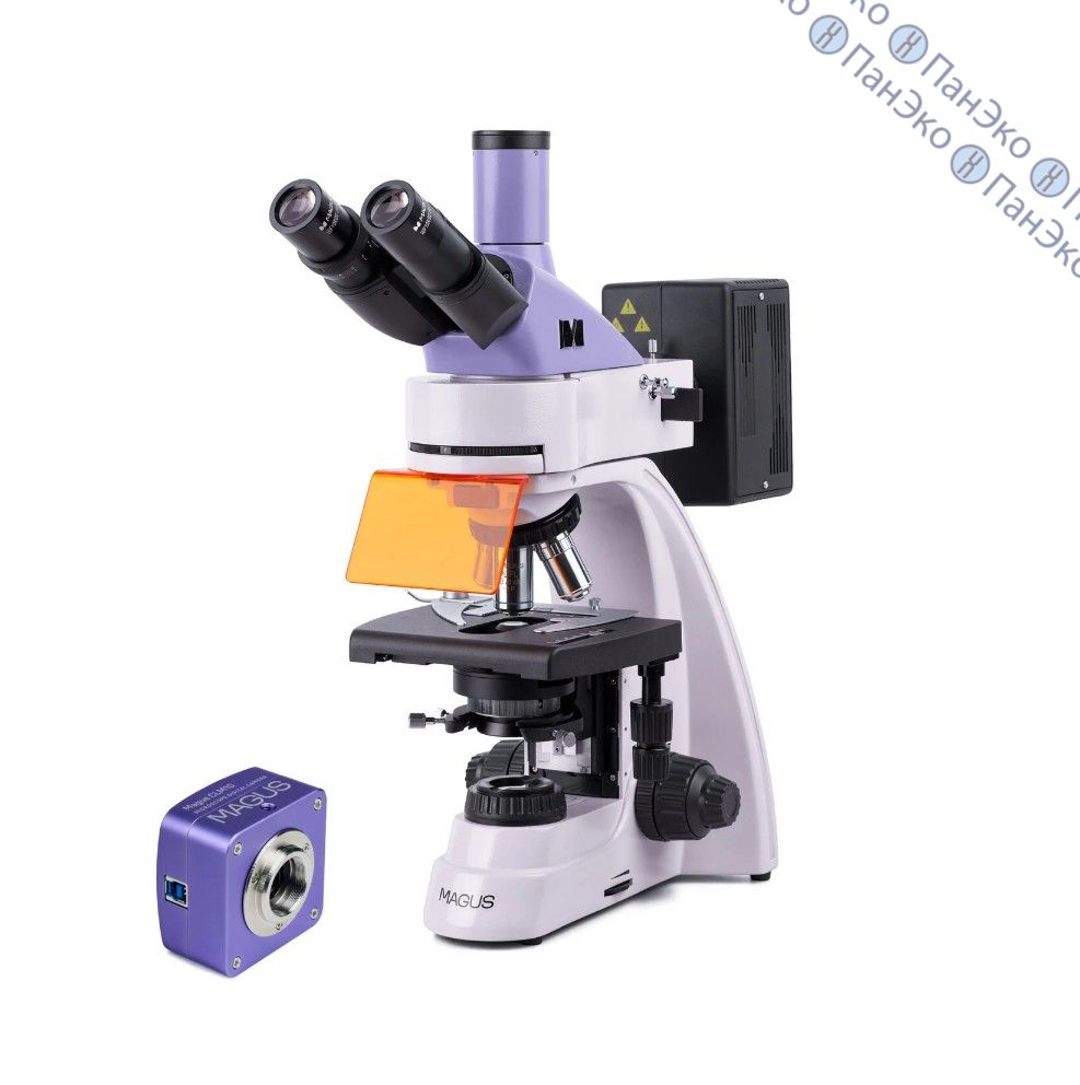 Микроскоп люминесцентный Lum D400, прямой, тринокуляр, галог. 30 Вт, ртут. 100 Вт, камера, MAGUS