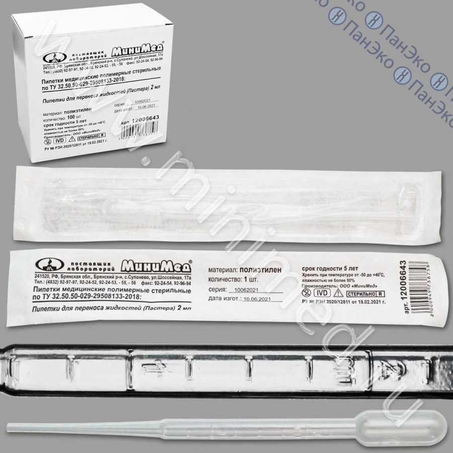 Пипетки Пастера (груши), 2,0 мл, стерильные, Минимед (В НАЛИЧИИ)