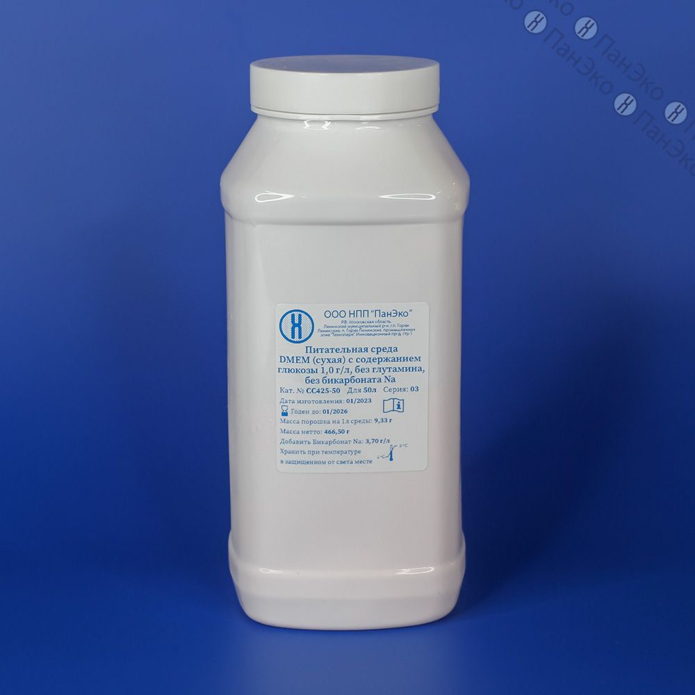 Сухая среда DMEM без глутамина, содержание глюкозы 1 г/л, на 50 л, ПанЭко (В НАЛИЧИИ)