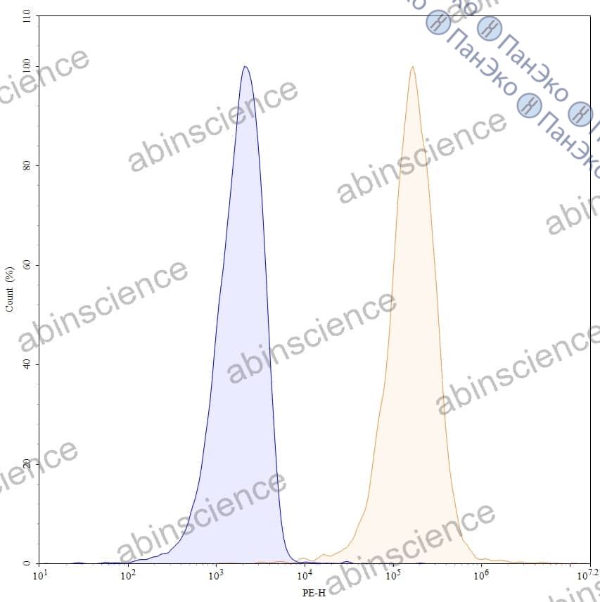 В гистограмме приведены данные по окрашиванию клеток линии Jurkat, подтверждающие эффективность антитела;
