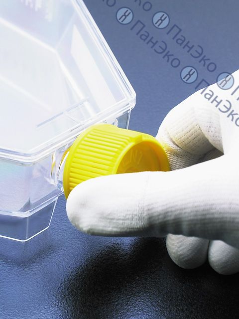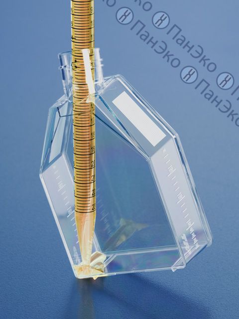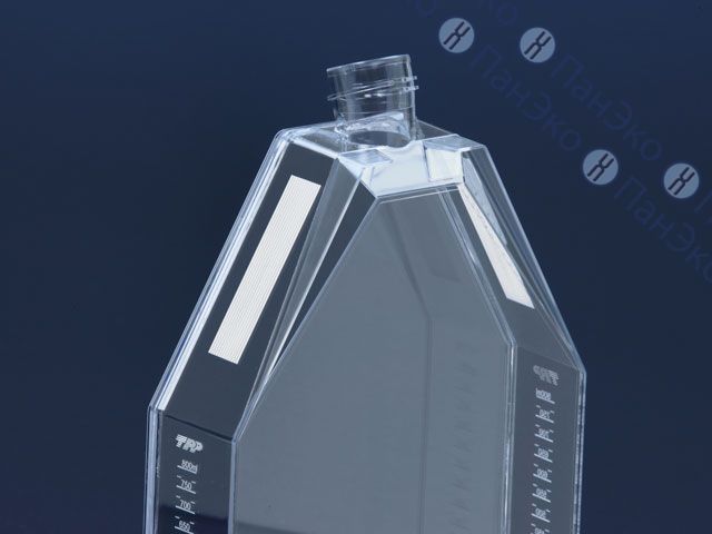 - Оптико-механическая обработка поверхности увеличивает адгезию клеток и обеспечивает равномерный рост; обрабатывается только дно флакона, что предотвращает нежелательный рост клеток вверх по стенкам;
