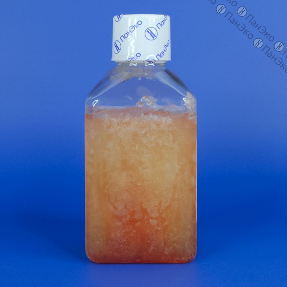 После размораживания и перемешивания среда представляет собой прозрачную жидкость красно-розового цвета.