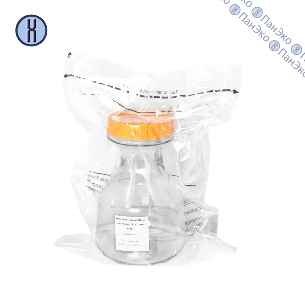 Колба Эрленмейера, 3 л, с винтовой крышкой, стерильная, FDCELL (В НАЛИЧИИ)