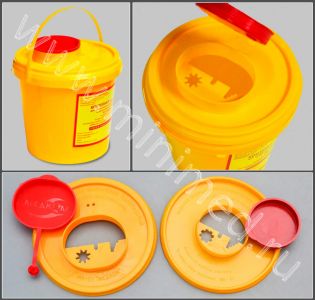 - Контейнер имеет специальное отверстие для съема металлических острых частей с одноразового медицинского инструментария;