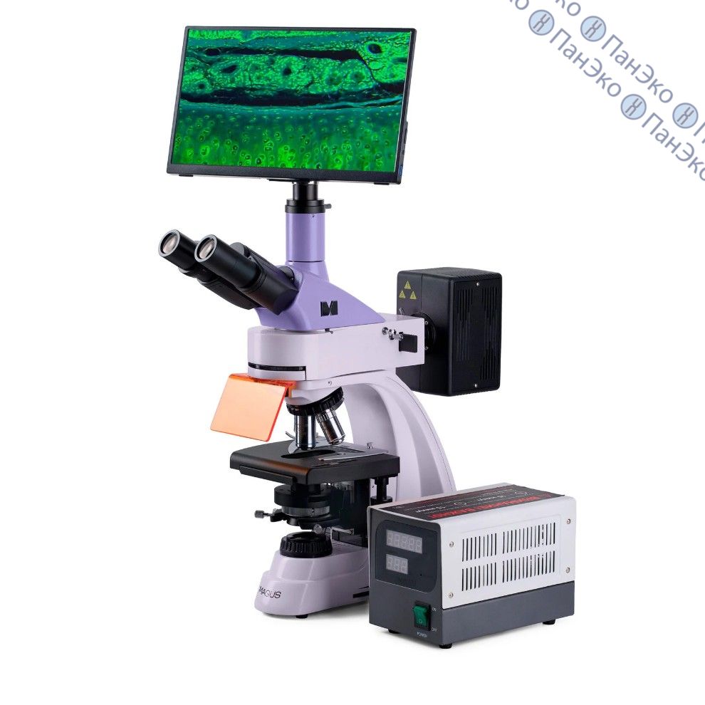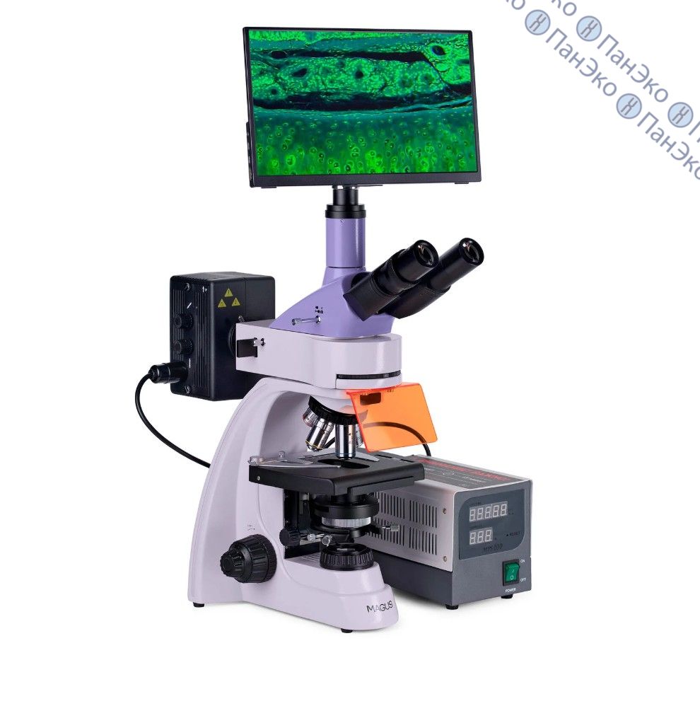 Микроскоп люминесцентный Lum D400 LCD, прямой, тринокуляр, галог. 30 Вт, ртут. 100 Вт, камера, монитор, MAGUS