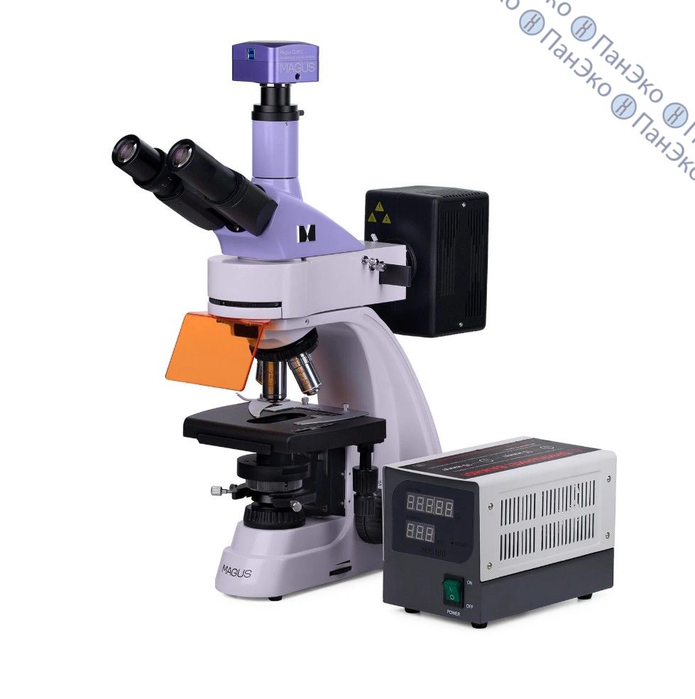 Микроскоп люминесцентный Lum D400, прямой, тринокуляр, галог. 30 Вт, ртут. 100 Вт, камера, MAGUS
