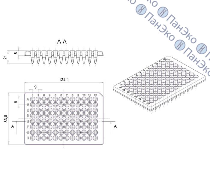 - Буквенно-цифровая разметка, нанесенная на поверхность, упрощает заполнение планшета и позволяет идентифицировать пробы;