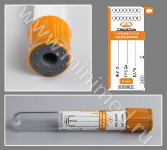 Пробирки вакуумные с активатором свертывания и гелем, 9 мл, Минимед