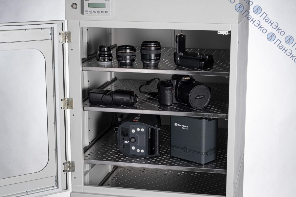 Шкаф сухого хранения обеспечивает сохранность компонентов и электрических характеристик диэлектриков в условиях осушения внутренней среды шкафа в соответствии с требованиями по хранению радиотехнических изделий, регламентированных российскими и зарубежными стандартами.
