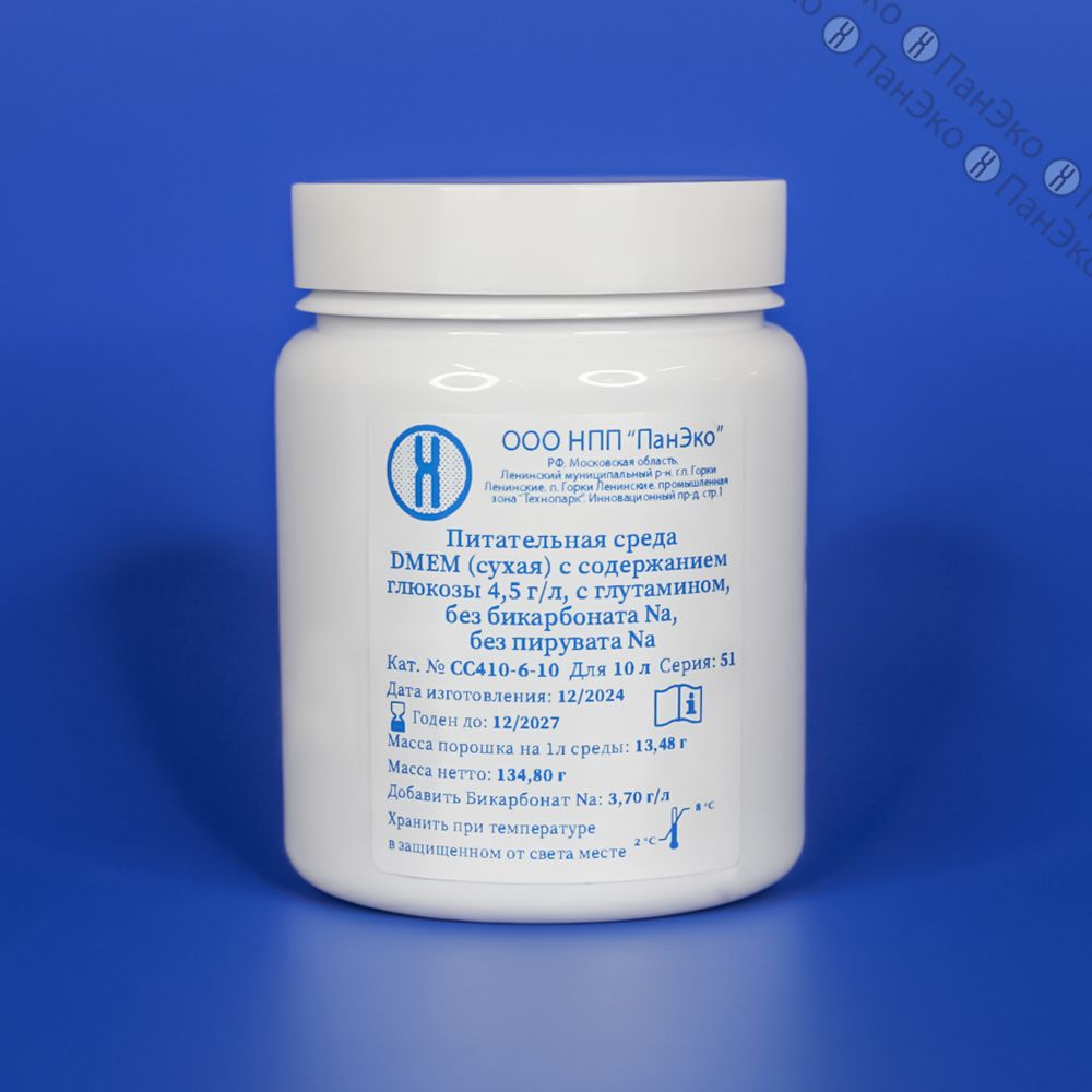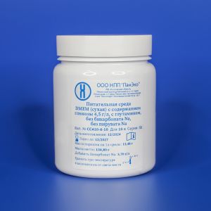 Сухая среда DMEM, с глутамином, без бикарбоната и пирувата Na, содержание глюкозы 4,5 г/л, на 10 л