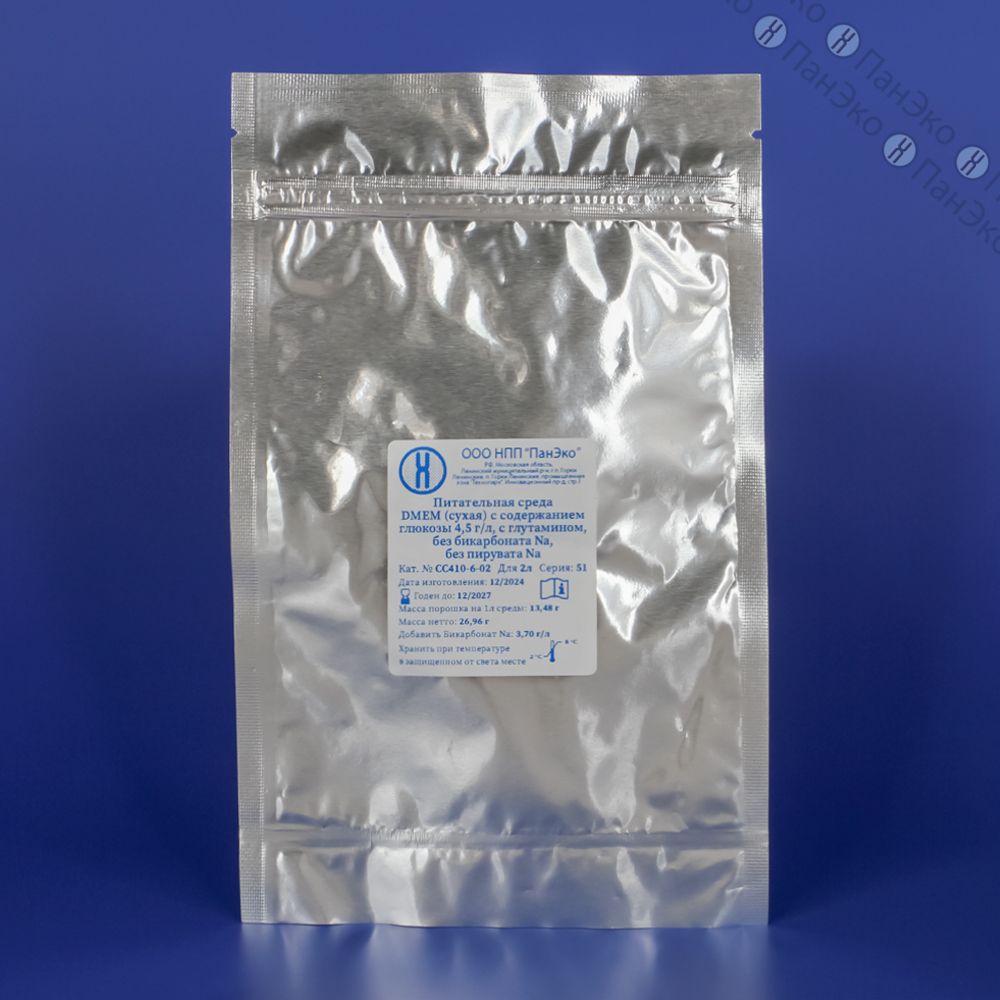 Сухая среда DMEM, с глутамином, без бикарбоната и пирувата Na, содержание глюкозы 4,5 г/л, на 2 л (В НАЛИЧИИ)
