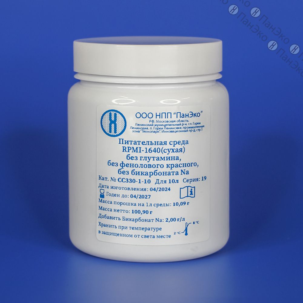 Сухая среда RPMI-1640 без глутамина, фенолового красного, бикарбоната Na, на 10 л