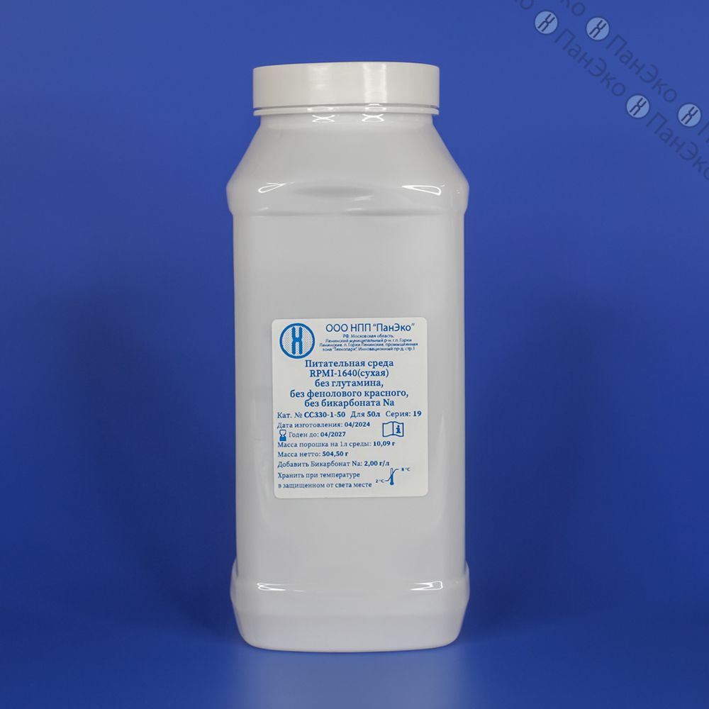 Сухая среда RPMI-1640 без глутамина, фенолового красного, бикарбоната Na, на 50 л