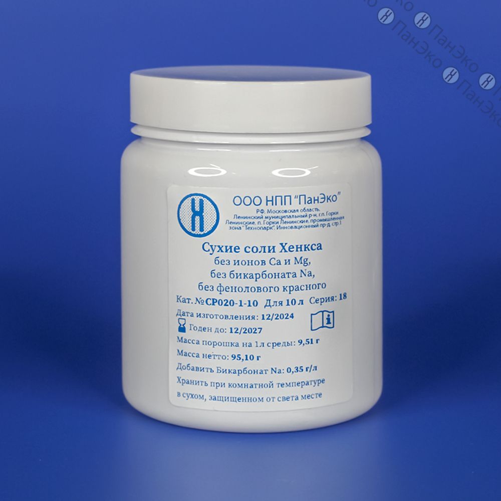 Сухие соли Хенкса, без ионов Са и Мg, без бикарбоната Na и фенолового красного, на 10 л