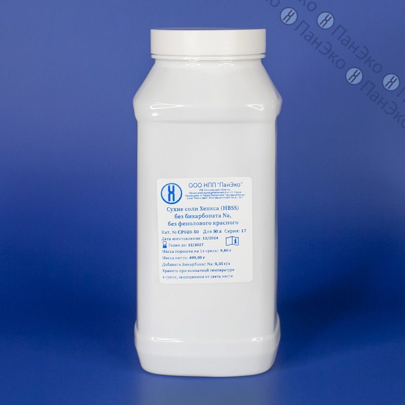 Сухие соли Хенкса (HBSS), содержит Ca, Mg, без бикарбоната, без фен. кр., для 50 л
