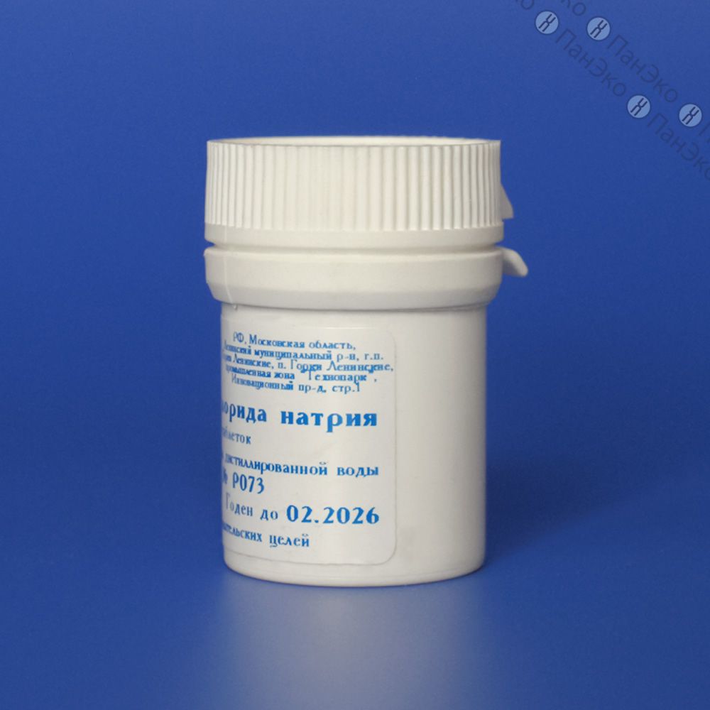 Для приготовления 0,9% (физиологического) раствора хлорида натрия 1 таблетку растворить в 100 мл дистиллированной воды.